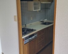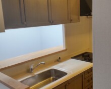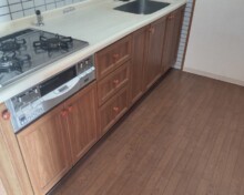 新しくシステムキッチンに取り替え、空間を広く見せるために、吊り戸棚や要らない壁を壊し、和室をウォークインクローゼットへ。